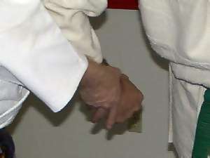 This armlock is ideal to use on a larger person or if you have small hands. It's an excellent alternative to the wrist press armlock & is now used by a number of major law-enforcement agencies. Once set you have a great deal of control over the person & it can be quite painful - so use caution! This technique is shown as a reaction to a right hit. It could be used for a variety of other techniques as well. Your initial response might have to be different, depending upon the attack or situation. It can be used from a desensitizing "come with me" hold [law-enforcement: low level of force] all the way to an overhead knife or club attack or high knife slash. Thanks to Marc Kolodziejczyk, for being my uke and Sensei Marc Tucker for the photography.